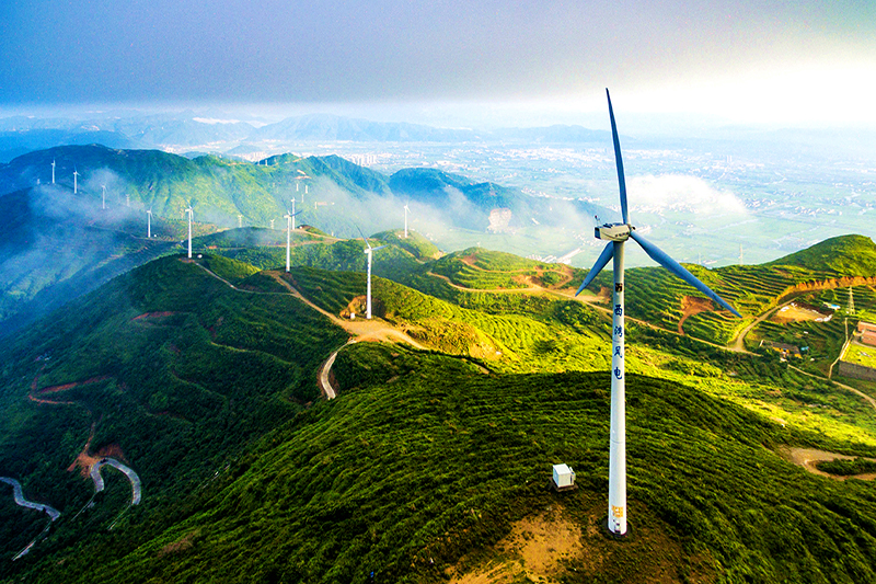 位于浙江台州市黄岩区西部山区海拔1000米处的大寺基山脊优能风电场,利用风力资源,促进节能减排,缓解供电压力。据了解,风电场可提供8000万千瓦时绿电,每年节约标煤30多万吨。浙江电力利用自身优势主动服务风电场,引导绿色低碳生产生活方式,实现生态保护和可持续发展。